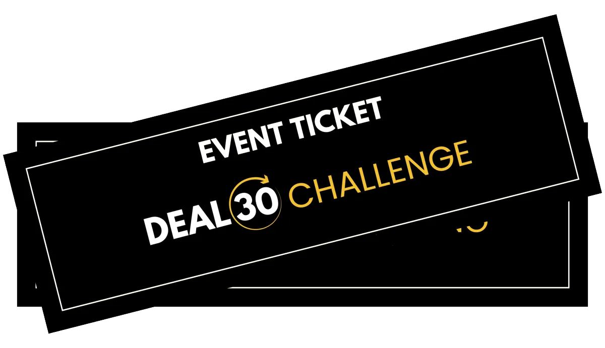 The Deal30 Challenge is your chance to learn the proven strategies top investors use to generate consistent deal flow—and see exactly how to apply them to your own business. You’ll walk away with a repeatable system to create cashflow, free up your time, and secure your financial future.